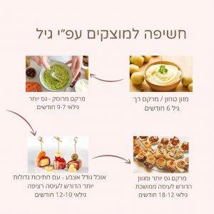 באזור גיל 8-7 חודשים ניתן לשנות את המרקם, לפעמים גם לפני, על פי הסימנים שמראה הפעוט בהתקדמות באכילה.